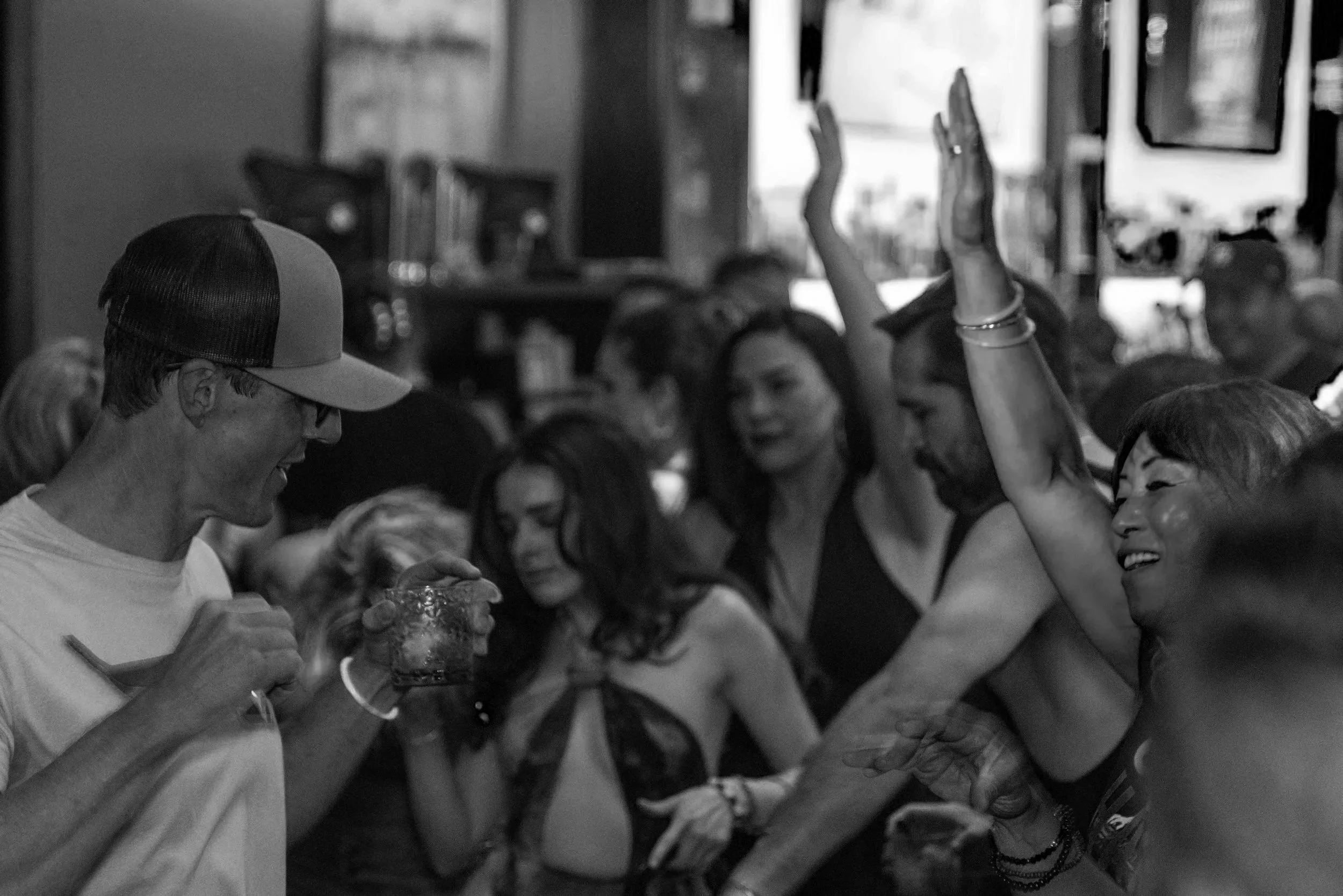 The crowd builds, drinks are flowing, and the vibe starts to click. Familiar faces, familiar songs.